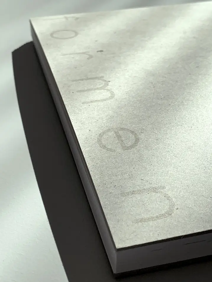 Für das Cover verwendete ich rohe Buchbinderpappe, die ich mit einem durchsichtigen Glossfilm siebbedruckt habe.